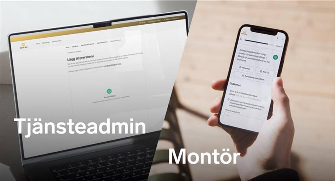 Tjänsten Säker Sol är en helt ny digital tjänst för dig som säljer, projekterar eller utför solcells- och batteriinstallationer. Oavsett om du använder tjänsten som huvudentreprenör eller underentreprenör säkerställer tjänsten ett fackmässigt utförande genom egenkontroll med hänvisning till regelverk och riktlinjer, dokumentation och intyg. Den tydliga dokumentationen med hänvisning till regelverk och riktlinjer är även ett bra underlag inför en besiktning av en Säker Sol-installation. Tjänsten är anpassad för såväl dator som för surfplatta och mobiltelefon. Allt för att kvalitetssäkra och effektivisera utifrån din vardag.